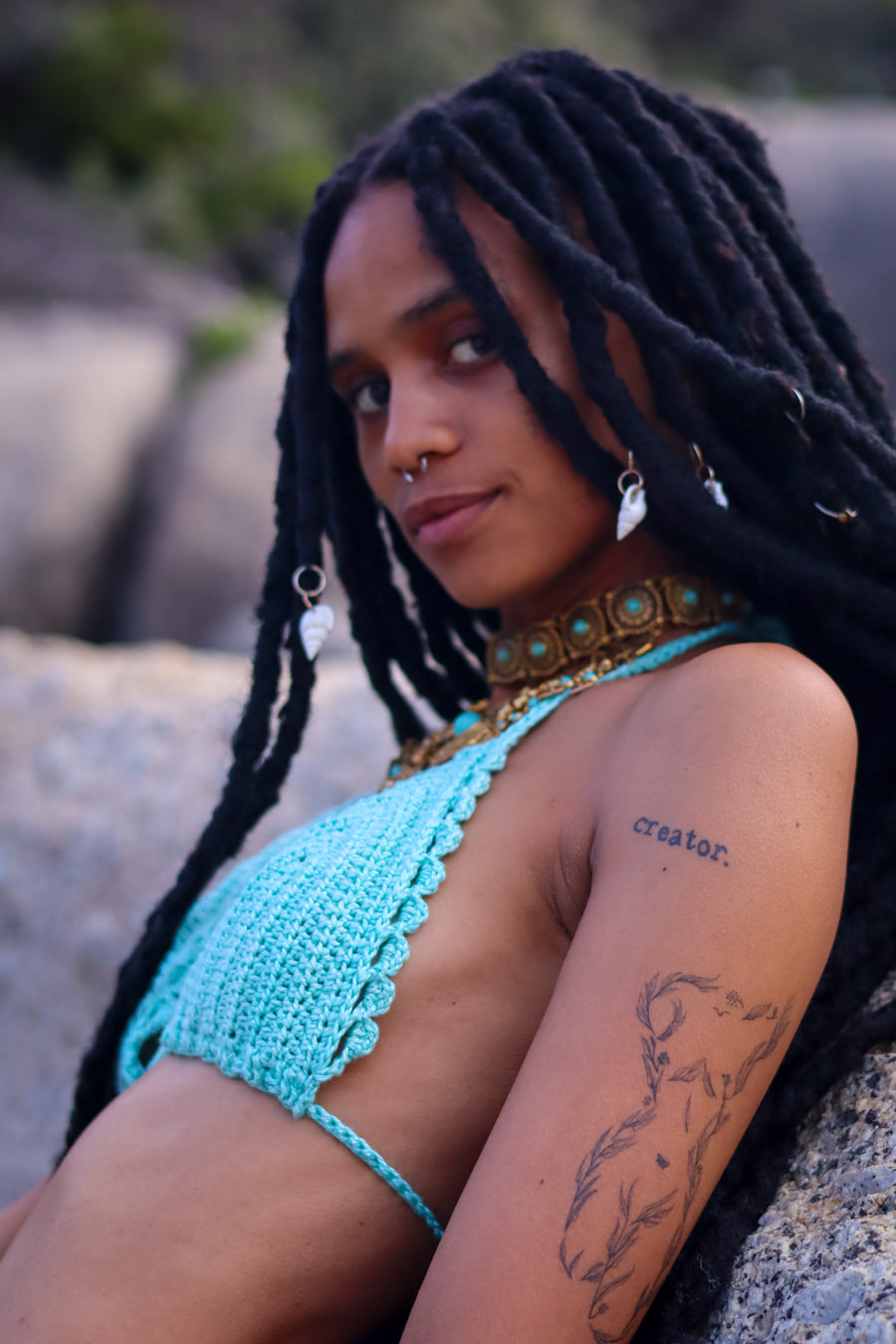This top is swim-proof and safe for both saltwater and pool wear, but should still be handled with care due to its handmade nature.